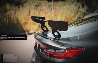 Am Fahrzeug montiert kann dieser Heckflügel dank seiner innovativen Standfüße jederzeit beliebig in